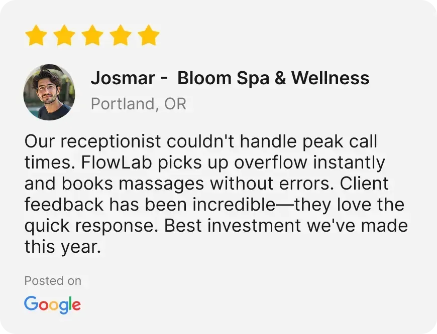 Experience how FlowLab AI answers questions, handles objections, and books appointments 24/7—just like it will for your business, with no extra hires.