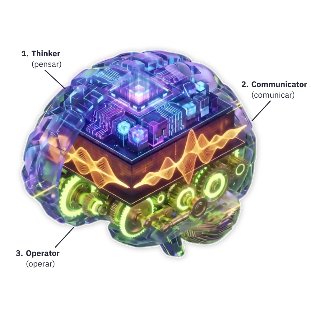 Un IBR™ piensa, se comunica y ejecuta tareas con criterio profesional usando FlowLab Cortex™—igual que un empleado senior, pero 24/7 y sin errores.